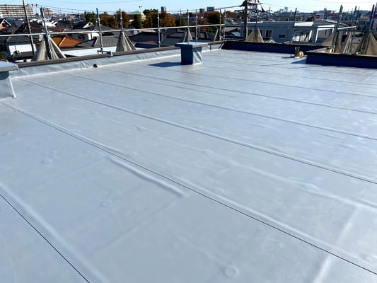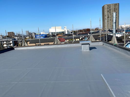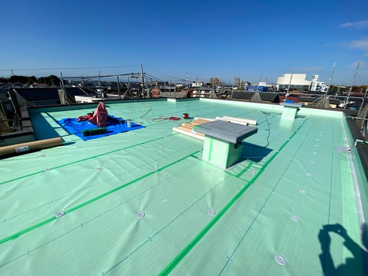 バルコニーはウレタン防水を実施しています。屋上はシート防水から塩化ビニールシート防水機械固定式工法に改修。